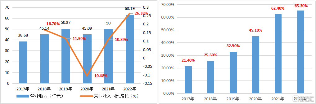 图表二:公司营业收入情况(图左)与创新药收入占比(%)(图右)