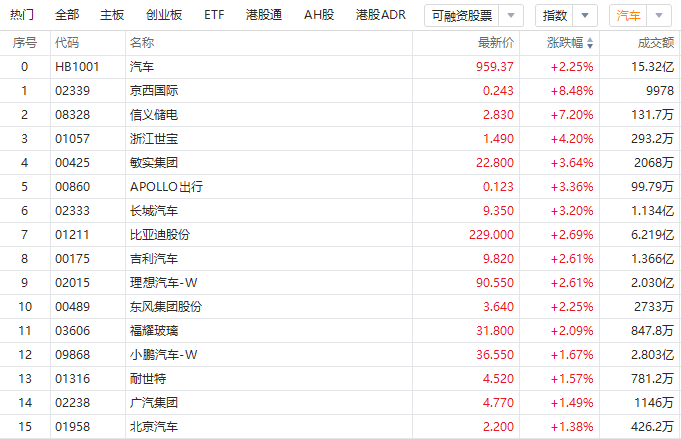 汽车板块由跌转升,截至出稿,Apollo出行、长城汽车均涨超3%、比亚迪股份、理想汽车、吉利汽车涨超2%,小鹏汽车、广汽集团涨超1%。