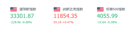 截至周三收盘,标普500跌0.38%,报4055.99点;纳斯达克指数涨0.47%,报11854.35点;道琼斯工业指数跌0.68%,报33301.87点。热门中概股普涨,唯品会涨超5%,微博涨超4%,腾讯ADR涨近4%,小鹏汽车、哔哩哔哩涨超3%。