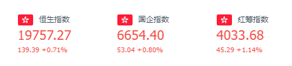 截至周三收盘,恒生指数涨0.71%或139.39点,报19757.27点;恒生国企指数涨0.8%,报6654.4点;恒生科技指数涨1.25%,报3872.01点。截至4月27日,恒生指数夜期(4月)收报19734点,跌21点或0.106%,低水23点。
