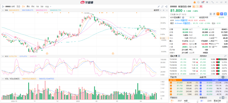 阿里 $09988.HK 今早继续下跌,早上低开约1.8%后在81至82元上落窄幅上落,最低见80.8元,继昨日再创一个月新低。 截至收盘,报81.8港元,跌1.8%,目前为连续第8日下跌,累计至今跌近15%。 阿里旗下阿里云宣布核心产品价格全线下调15%至50%,存储产品最高降幅达50%。 并宣布启动通义千问伙伴计划。