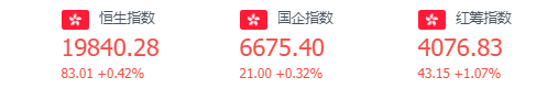 截至周四收盘,恒指涨0.42%,报19840.28点,中国平安暴涨逾9%,招行大跌5%。恒生科技指数收跌0.26%,科网股涨跌不一,哔哩哔哩跌超3%,阿里巴巴、百度跌超1%,商汤、快手涨超1%。