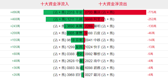 淡仓(认沽证及熊证)方面,周四中国平安、比亚迪股份、美团等相关淡仓分别约496万、468万及243万港元资金净流入; 腾讯控股、阿里巴巴、药明生物相关淡仓分别约775万、252万及130万港元资金净流出套现。