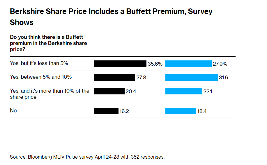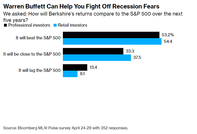 在352名受访者中,超过一半的人相信,该公司未来五年的回报率将跑赢标普500指数。这一响亮的信任票是在本周伯克希尔股东大会召开之前投出的。