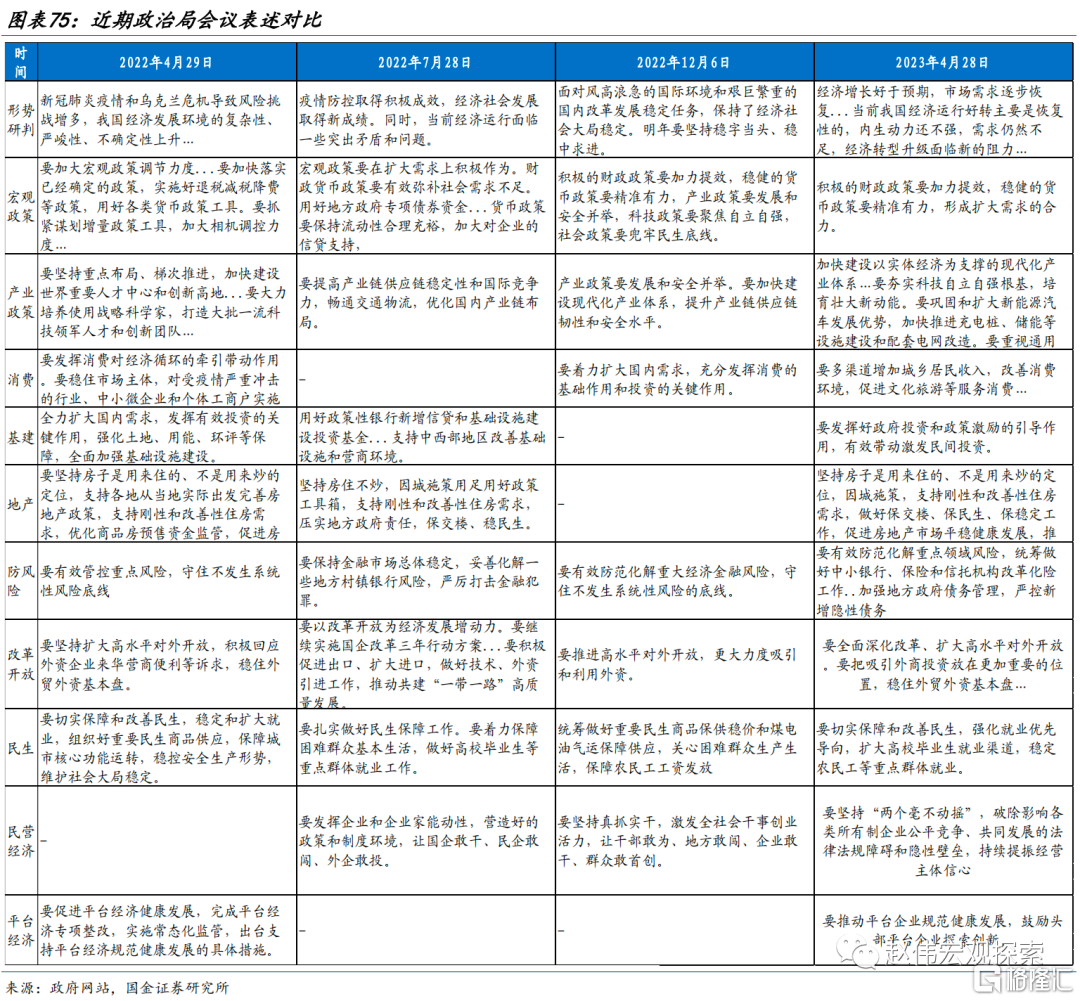 简评:会议对经济形势研判总体更为积极,政策部署没有“强刺激”、基本延续前期定调,更加注重产业推动。4月政治局会议,对“三重压力”判断由去年底的“仍然较大”改为“得到缓解”,认为“经济增长好于预期”等;同时,也指出当前经济好转主要是恢复性的,内生动力不强、需求不足、经济转型升级和高质量发展面临阻力和挑战等。