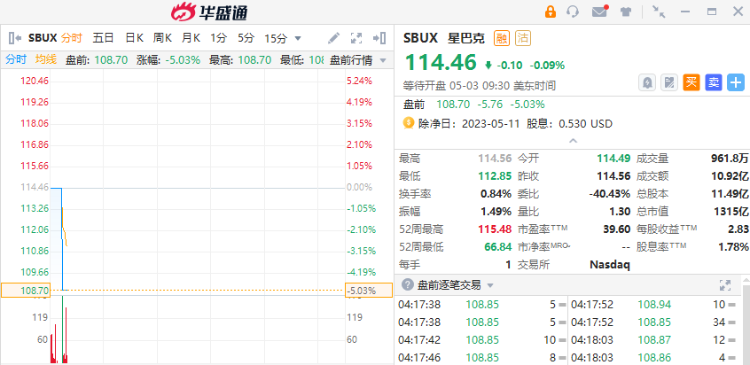 星巴克 $SBUX 盘前跌超5%,2023财年Q2业绩好于市场预期,但基于消费者行为及国际旅游不确定性,公司决定重申全年业绩指引。