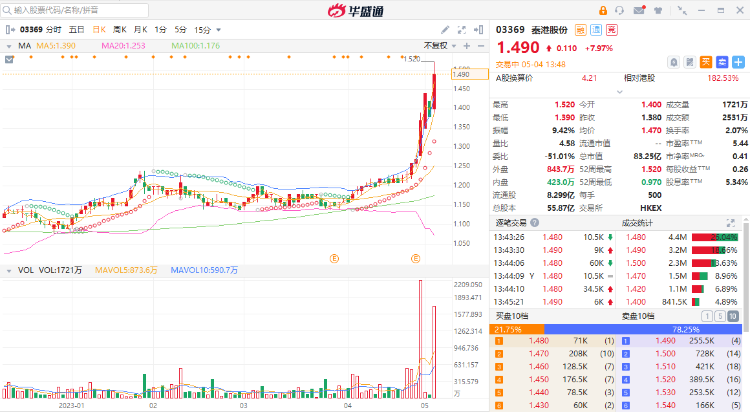 操作建议:可于现价1.47港元附近吸纳,中长线可见2.10港元,跌穿1.20港元止蚀。