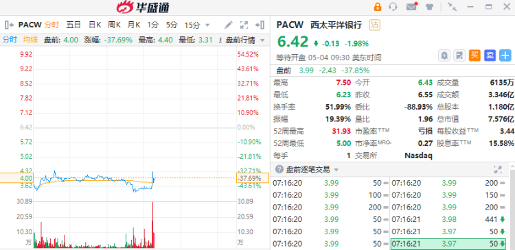 周四美股盘前,西太平洋合众银行 $PACW 成为投资者关注美国地区银行健康状况的最新焦点,其股票在周四美股盘前交易中下跌近一半,早些时候,美联储主席鲍威尔表示,当局接近遏制今年导致四家银行倒闭的动荡。