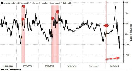 如此大的倒挂通常被视为衰退即将到来的警告,而交易员也的确正押注经济将要大幅降温。