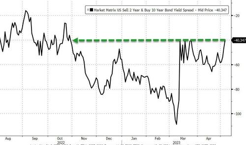有趣的是,虽然美联储最青睐的收益率曲线指标仍在进一步倒挂,但业内最为常见的2年期/10年期美债收益率曲线则正在重新便陡,该曲线周四的倒挂幅度收窄至了-40个基点,为去年10月22日以来最小的倒挂幅度......