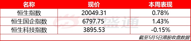 恒生指数本周涨0.78%,报20049.31点;国企指数本周涨1.43%,报6797.75点;恒生科技指数本周跌0.15%,报3895.53点;