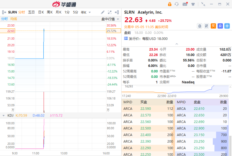 华盛资讯5月5日消息,加州生物科技公司Acelyrin Inc. $SLRN 今日登陆纳斯达克,首挂涨超25%,现报22.63美元,该公司IPO此前给出的IPO发行价为每股18美元。