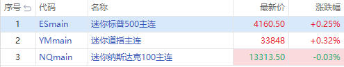 美股盘前,三大期指盘前走势分化,截至发稿,纳指期货 $NQmain 跌0.03%,标普500指数期货 $ESmain 涨0.25%,道指期货 $YMmain 涨0.32%。