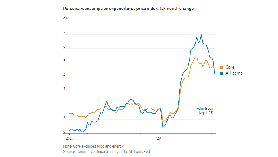 美联储关注通胀指标有好几种,但更倾向于美国商务部公布的PCE(个人消费支出价格)指数。按照这一标准,3月份通胀率已经从去年6月创下的40年高点降至4.2%。美国商务部称,剔除波动较大的食品和能源价格的核心PCE指数3月份年率为4.6%。经济学家认为,核心通胀率是未来物价上涨的更好预测指标。