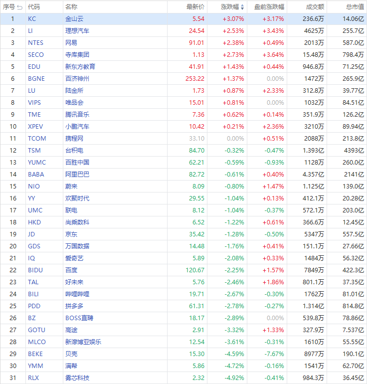 华盛资讯5月8日消息,热门中概股多数走低,3倍做多富时中国50指数ETF $YINN 涨超1%,金山云涨超3%,寺库集团、网易涨超2%,百济神州涨超1%。阿里巴巴跌0.61%,京东跌超1%,百度、爱奇艺跌超2%,贝壳跌超4%,此前两部门联合印发《关于规范房地产经纪服务的意见》明确,房地产互联网平台不得干预经纪机构自主决定收费标准。