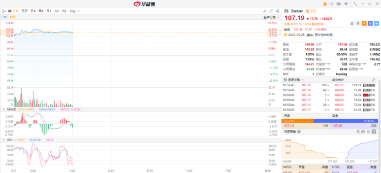 Zscaler $ZS 涨19.82%,报107.19美元,总市值155.4亿美元。