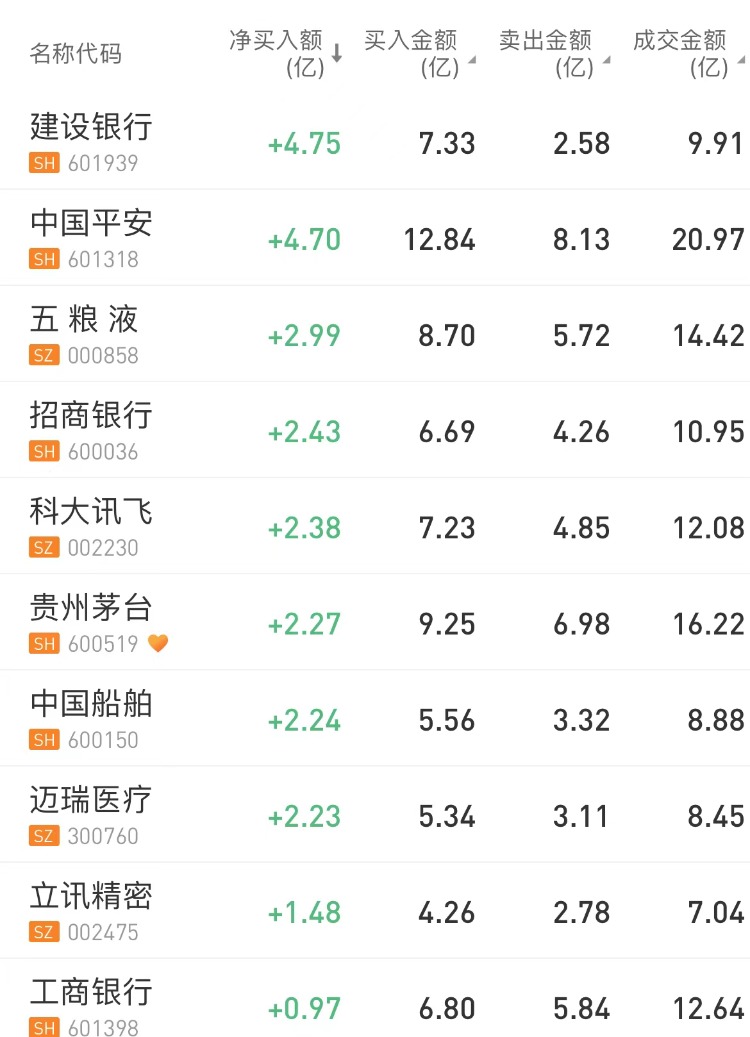 北向资金全天净买入9.83亿元,其中沪股通净买入27.92亿元,深股通净卖出18.09亿元。沪深股通两市前十大成交中净买入个股居多,建设银行、中国平安分居净买入前两位,此外招商银行、农业银行、工商银行、平安银行均获北向资金净买入,但中信证券、东方财富、同花顺遭北向资金净卖出。格力电器净卖出居首。