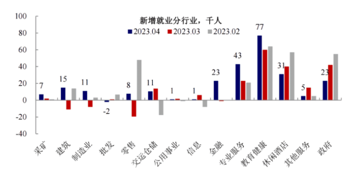 分行业来看。2~4月时间内,服务业依旧是贡献大头。目前美国就业增加最多还是在低端的服务业这个领域。反而也是给市场传递一个比较好的信息,就是越来越多的人现在手中荷包耗尽,开始加入就业队伍对非农数据有个比较好的改善。