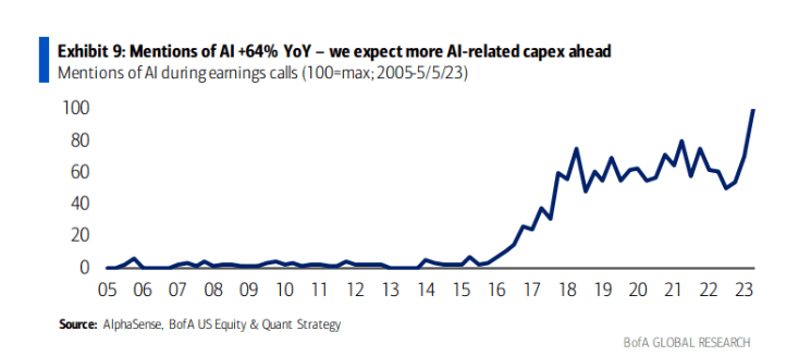言财老师提出,在全面拥抱业绩超预期的成长股板块,继续重点关注AIGC。通过本次财报季,AI被提及率达到同比64%,这也是创历史新高。谷歌、微软、亚马逊、Meta都明确表示接下来的季度要加大AI资金投入。