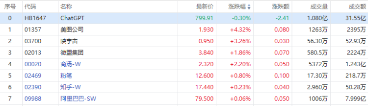 ChatGPT概念逆势走高并带动半导体概念反弹,美图公司涨超4%,商汤-W涨超2%,中芯国际现涨近3%昨日股价大跌7%。