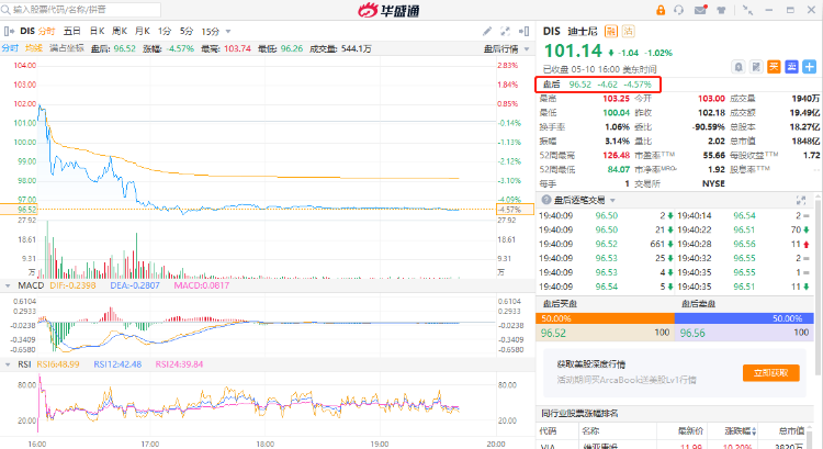 财报公布后,迪士尼股价在盘后交易中下跌4.57%,至96.52美元。一些投资者可能对Disney+连续第二个季度流失订阅用户感到失望。