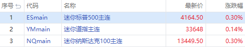 华盛资讯5月11日消息,美股股指期货短线走高,截至发稿,纳指期货 $NQmain 涨0.30%,标普500指数期货 $ESmain 涨0.30%,道指期货 $YMmain 涨0.14%。美股市场期货交易功能已上线>>