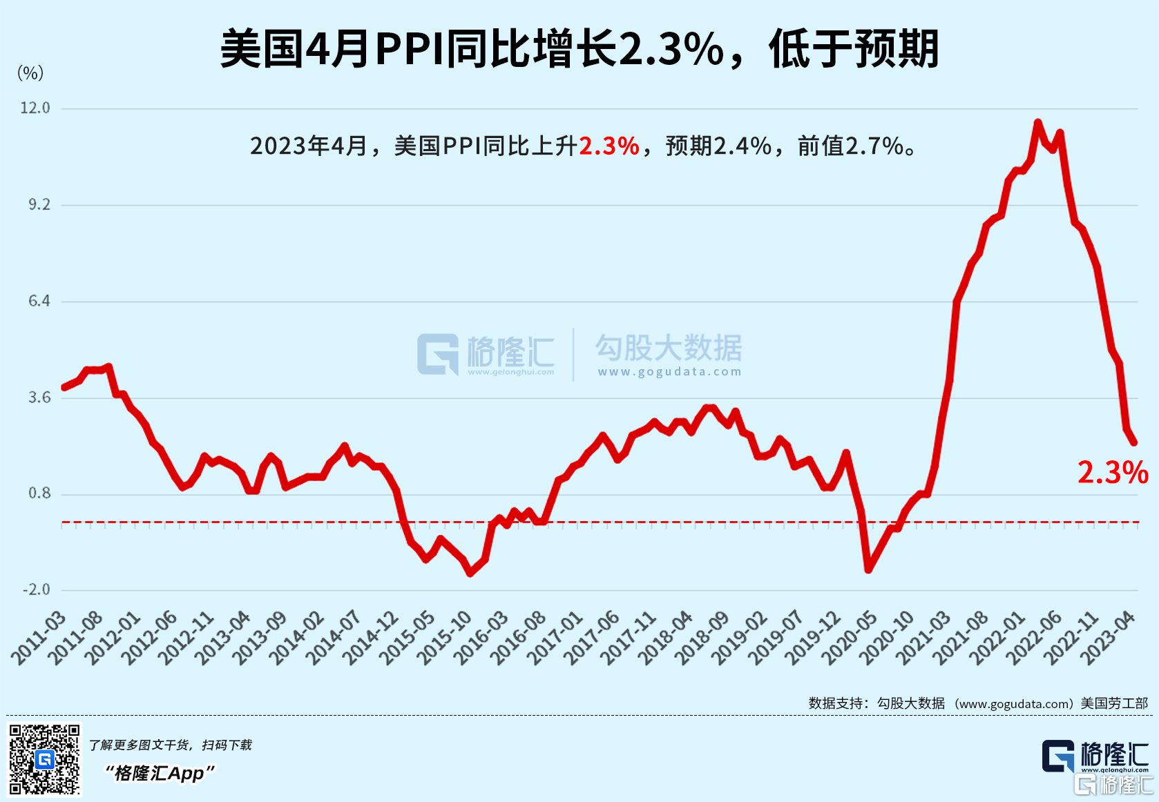 继昨日美国CPI迎来“十连降”,创2021年4月份以来新低,为美联储暂停加息提供了空间。今日,美国PPI数据也紧随公布。
