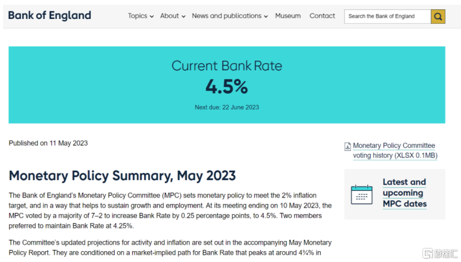 市场利率预测,英国央行利率在2023年第四季度为4.8%。英国央行自2021年12月以来已经连续第12次提高借贷成本。