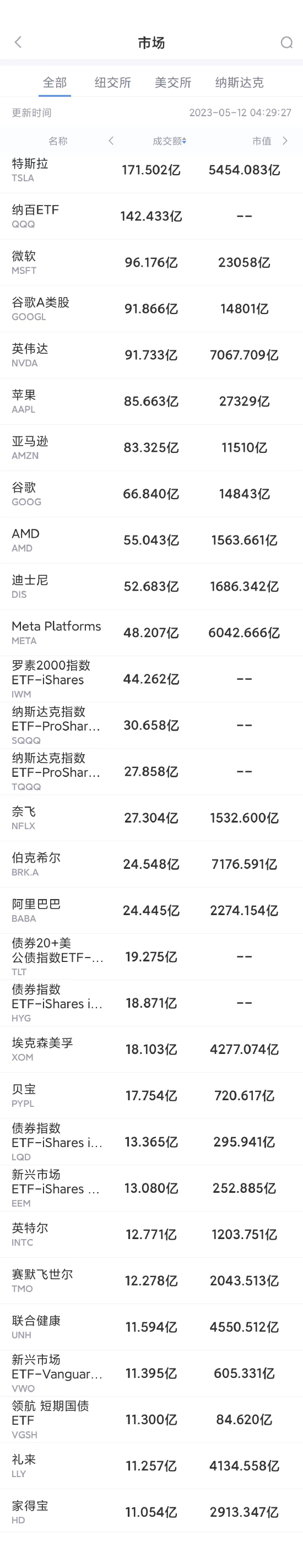 第4名英伟达收高/跌%,成交91.7亿美元。