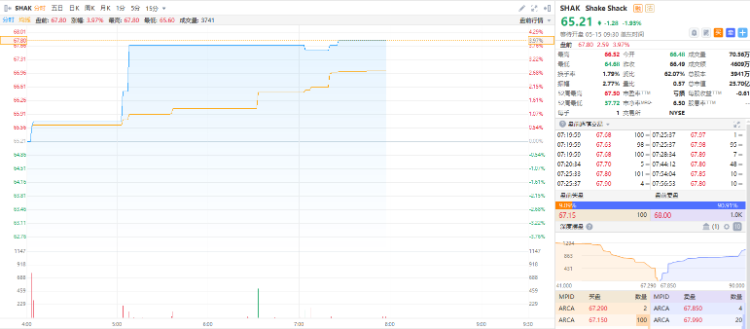 Shake Shack$SHAK盘前涨超3%,报67.6美元。活跃投资基金Engaged Capital计划为Shake Shack的三个董事会席位进行委托书争夺战。该基金已经与Shake Shack进行了六个多月的谈判,希望公司聘请一家咨询公司来提高效率,并着眼于在两年内将其盈利能力翻一番。Engaged Capital现持有6.6%的Shake Shack股份。
