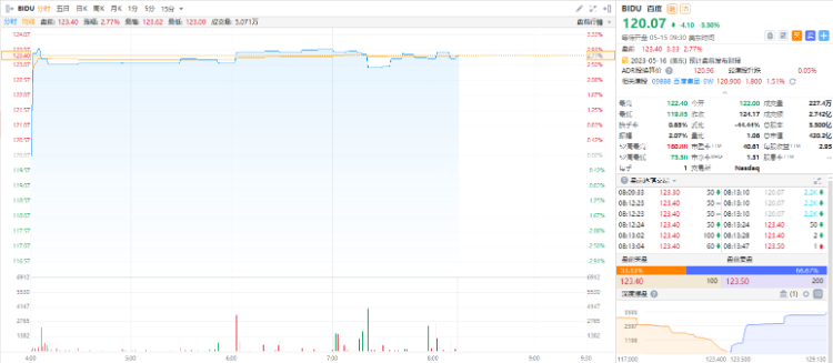 百度盘前涨2.77%,报123.15美元。百度将于5月16日(周二)公布一季度业绩。中信证券此前发研报指,预期百度今年首季广告及云端等核心业务稳步复苏,当中线上广告业务收入预期将录得正增长,智能云业务则预期维持高单位数升幅,推动首季收入按年增长3%至293亿元人民币,非通用会计准则下纯利料达到47亿元人民币,AI业务可能于今年底至明年初开始逐步贡献收入,继续维持“买入”评级,目标价153港元。