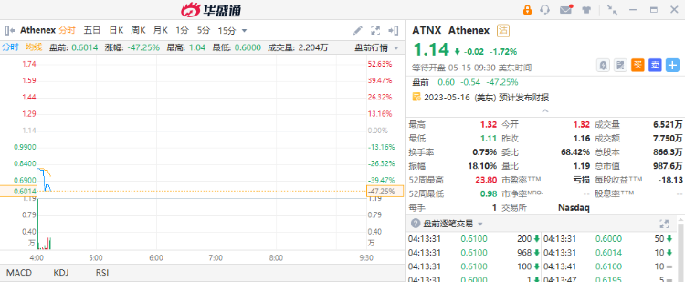 Athenex盘前重挫逾47%,此前该公司申请破产保护程序。