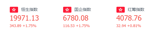 截至周一收盘,恒指涨1.75%,国指、恒生科技指数分别涨1.75%和1.33%。腾讯控股涨约4%,快手-W、美团-W涨超3%。