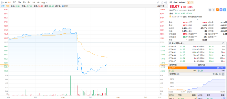Shopee母公司Sea盘前跌超7%,第一季度营收盈利均输预期