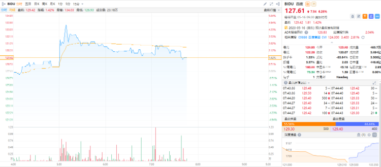 百度 $BIDU 盘前涨超1%,报129.4美元。百度第一季度营收311亿元人民币,超预期的300.1亿元人民币;调整后运营利润64.3亿元,远超预期的46.4亿元;调整后每股盈余2.34美元,远超预期的1.79美元。