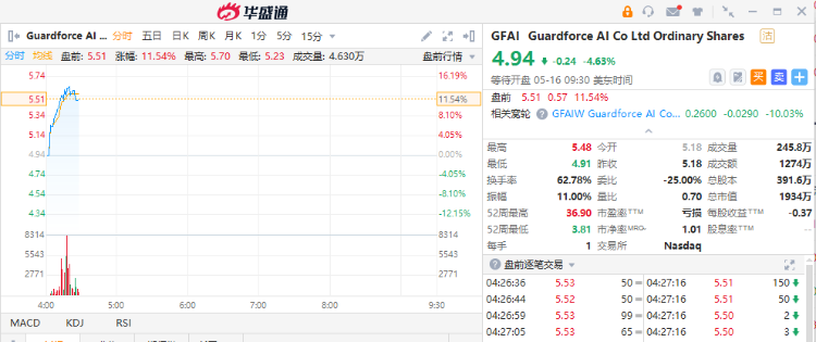 Guardforce AI盘前大涨近12%,该公司周一盘后表示,以每股4.65美元的价格完成了约260万股普通股的承销公开发行。此外,承销商全额行使了超额配股权,额外购买了387,090股普通股,公司获得的总收益约1,380万美元。