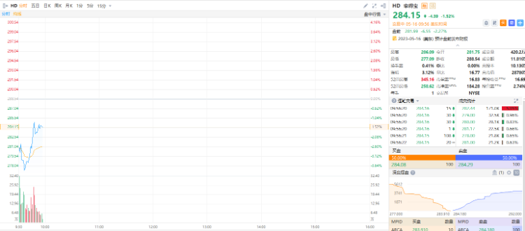 家得宝跌超1%。公司第一季度每股收益3.82美元,去年同期为4.09美元,预期3.8美元;销售额372.6亿美元,同比下降4.2%,预期383.1亿美元;公司第一季度客户交易量下降4.8%;一季度同店销售下降4.5%,预期下降1.42%。家得宝表示,木材通货紧缩、不利天气影响了第一季度的销售,与去年第四季度相比,整个业务承受的压力更大。