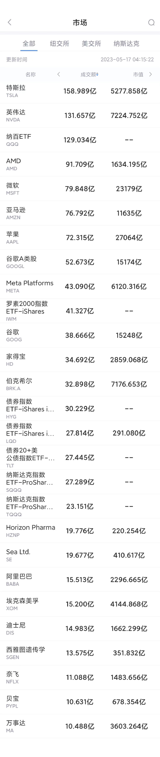 以下为美股当日交易最活跃的20只股票(按成交额):