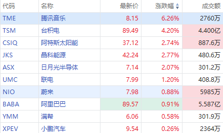 华盛资讯5月17日消息,热门中概股涨跌不一,腾讯音乐涨超6%,台积电涨超4%,晶科能源、日月光半导体涨超2%,蔚来、阿里巴巴跟涨;Boss直聘、贝壳跌超3%,好未来、理想汽车、百度、哔哩哔哩跌超2%。