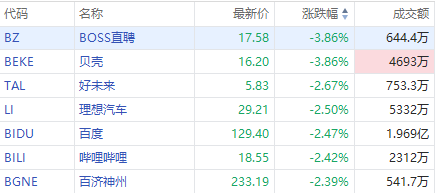 ETF方面, $YANG 涨超4%, $CWEB 跌超2%, $KWEB 跌超1%。