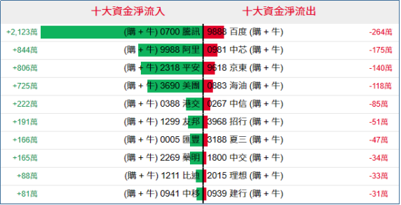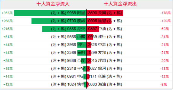 淡仓(认沽证及熊证)方面,周三阿里、腾讯、港交所相关淡仓单日分别获353万港元、268万港元、216万港元资金净流入,美团、汇丰相关淡仓单日分别获178万港元、120万港元资金净流出。