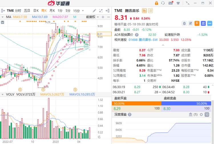 - 大摩和瑞银也相继看好腾讯音乐。大摩预计腾讯音乐今年二季度音乐业务收入将超过社交娱乐服务收入,料音乐业务营业利润率将在全年达到超过15%。瑞银将腾讯音乐第二季收入预测提高2.9%至74亿元人民币,予其8.5美元目标价。