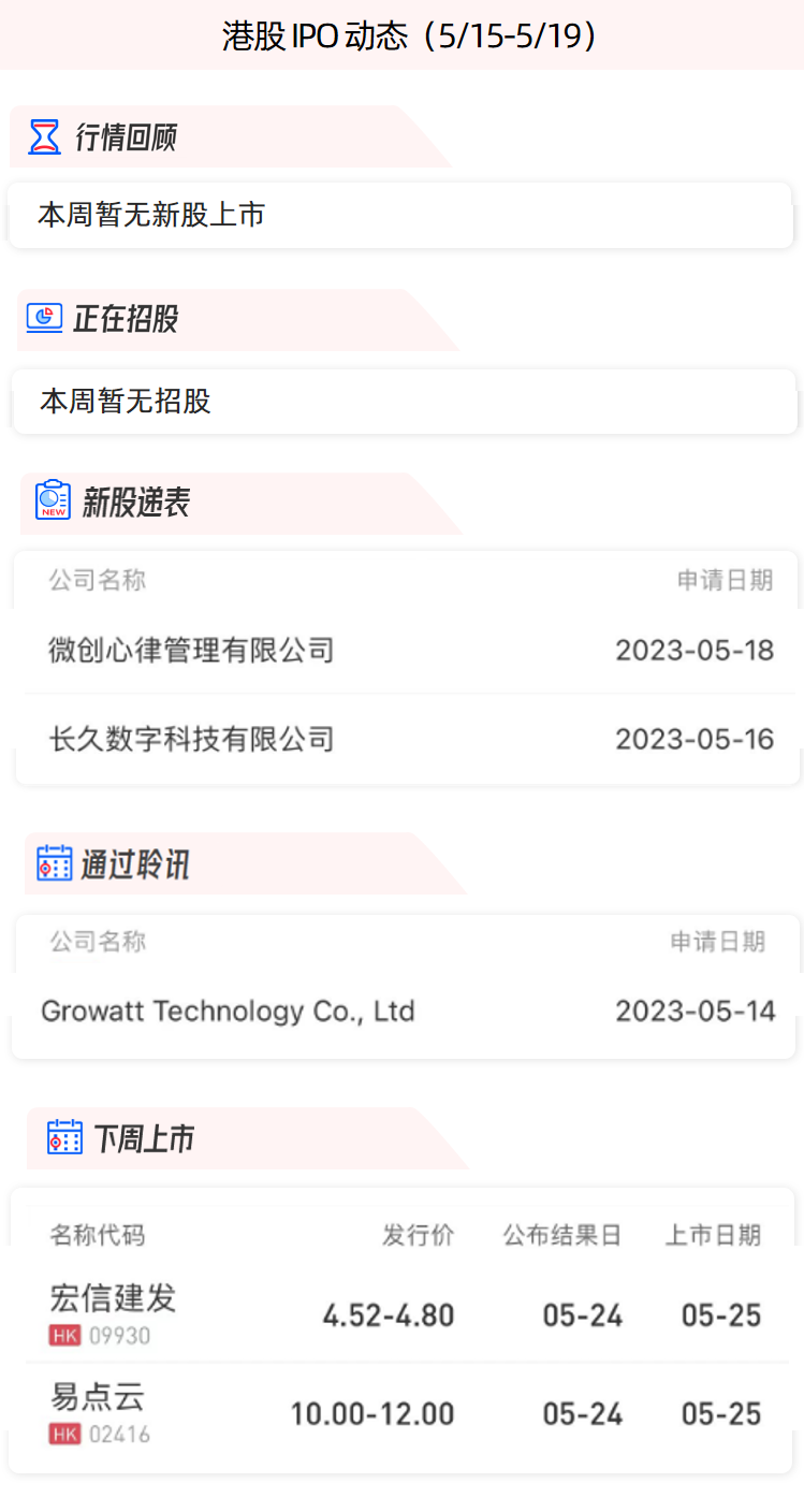 公司拟发行3.647亿股,预期发售价每股4.52-4.8港元,每手1000股,预期将于5月25日(下周四)上市,现行孖展倍数为0.06倍。
