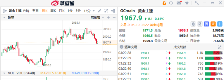 在债务上限谈判取得积极进展、美国经济数据好转以及一些美联储官员发表鹰派言论的情况下,加上美国总统拜登表示有信心避免美国政府违约,黄金价格从近期高点回落。目前黄金现货价格约为每盎司1965美元附近,比本月早些时候创下的年初以来的高点低了约4%。