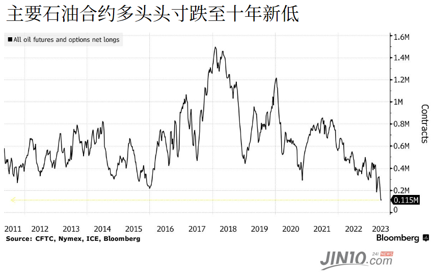 在所有主要石油合约中,对冲基金等非商业参与者的交易头寸接近至少2011年以来最看跌的水平。而投机者对柴油和汽油的综合看法接近自新冠疫情爆发以来最看跌的水平。