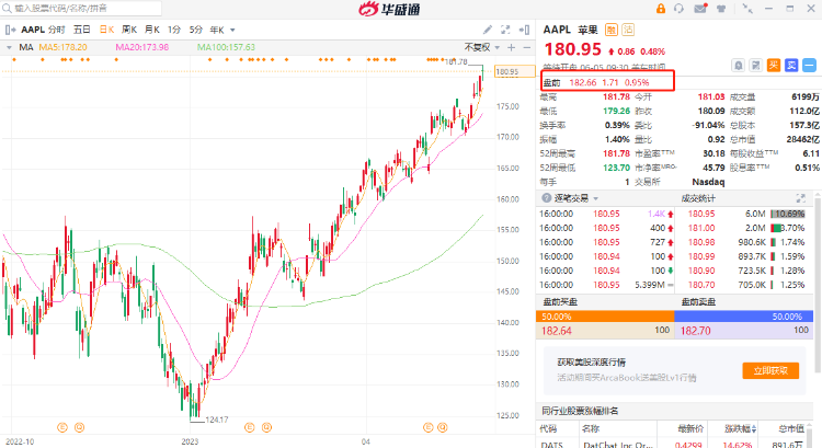 值得注意的是,苹果今日盘前再升近1%,现报182.66美元每股,为近一年新高,公司WWDC开发者大会将于北京时间6月6日凌晨1时召开。