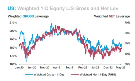 高盛集团大宗经纪部门编制的数据显示,多/空型对冲基金连续两周抢购美国股票,总购买量达到去年10月以来的最高水平。而在此之前的五周,它们持续抛售。摩根士丹利的客户上周将净杠杆率提高至2023年的最高水平。这是一种衡量风险偏好的指标,考虑了多头与空头头寸的对比。