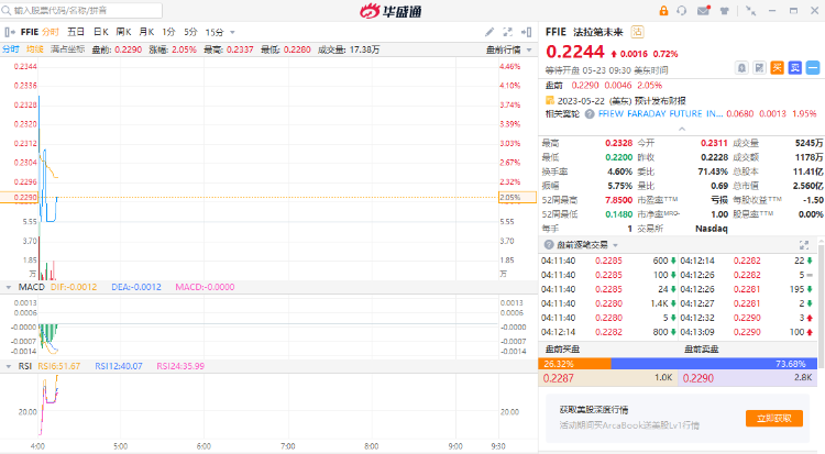 截至发稿,法拉第未来盘前一度涨近4%,现涨2%报0.229美元每股;此前公司宣布FF 91 & Faraday Future 2.0终极发布将于北京时间5月31日举行,公司宣布推出“法拉使命”共创共享平台。