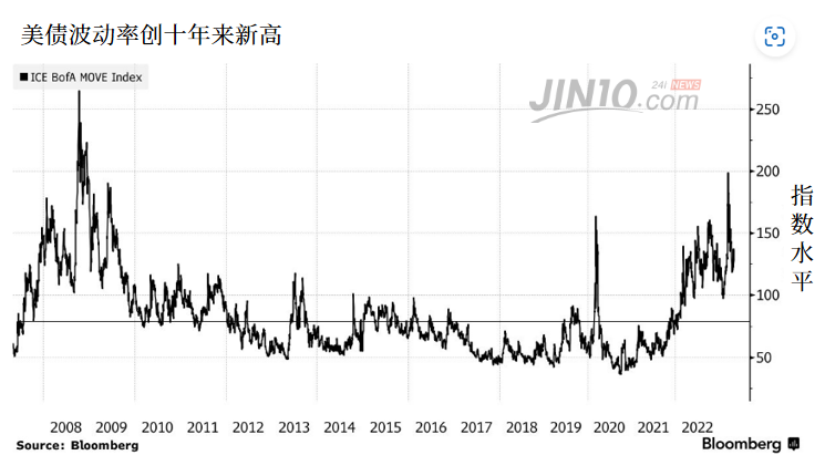 近日,跟踪未来30日美国国债隐含波动率指标——美银美林波动指数(ICE BofA MOVE Index)已经快上升到了全球金融危机期间的水平。