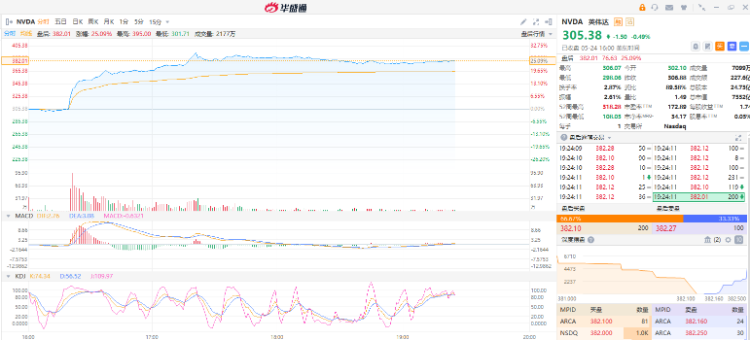 英伟达第一财季调整后每股收益和营收均超出华尔街分析师预期,并且该公司对2024财年第二财季营收作出的展望也远超预期,从而推动其盘后股价大幅上涨逾25%,突破52周最高价。